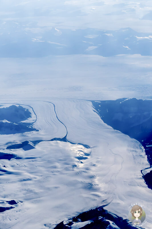 Mit einer guten Auswahl an Filmen, unserem Sekt und Snacks haben wir uns die Zeit vertrieben. Über dem fast wolkenlosen Grönland konnten wir wunderschöne Fotos machen und die Eiswelt beobachten – einfach gigantisch.